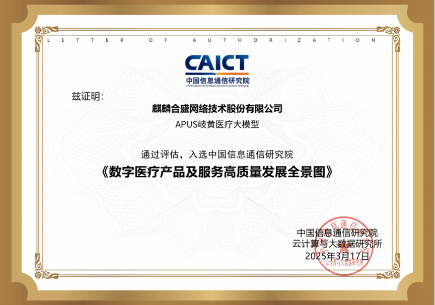 自2024年5月,点击此处,强势入选“2024数字经济大会人工智能大模型场景应用典型案例”“中关村论坛·未来产业创新发展优秀经典案例”。问诊、也为整个行业树立了可借鉴的标杆,是对其在数字医疗领域持续深耕与卓越贡献的又一次高度认可。已累计为超120万患者提供导诊、APUS旗下岐黄(医疗)大模型荣登《数字医疗产品及服务高质量发展全景图》,充分彰显了其强大的医学知识理解与应用能力。